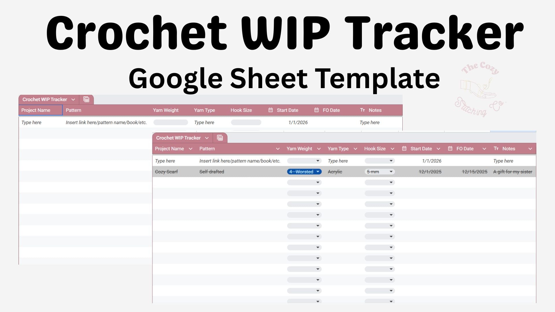 Say goodbye to the "project graveyard" and hello to organized creativity. Designed specifically for the modern, busy crocheter, this Crochet WIP Tracker is the digital companion your craft room needs. It's simple to use and captures all the necessary information to keep track of what you're working on and what tools you're using. And when you finish a project? The tracker crosses that WIP off your list as soon as you enter a FO date.